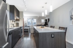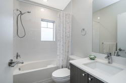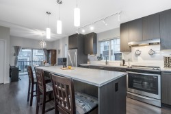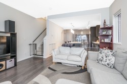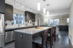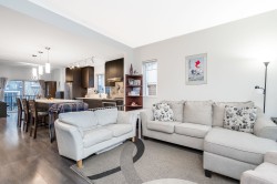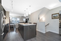 END UNIT Exceptional townhome in a prime, quiet location within the complex. Bright open-concept layout featuring a 10+ ft quartz island with white countertops, stainless steel appliances, and sun-filled living spaces. Enjoy sunset views from the living room and morning sun in the kitchen. Private patio and sun deck open to a spacious, fully fenced backyard. REC Facility on site!Three large bedrooms up, two full bathrooms, and a double-deep tandem garage with space for office or gym. Built by a well-regarded builder and centrally located—walking distance to malls, gyms, shopping, transit, and groceries. Rare end unit—one of the best in the complex.
