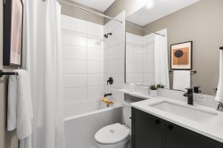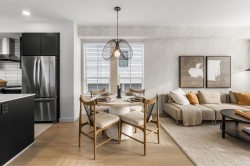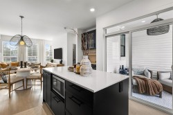 Welcome to RAIL DISTRICT, a master-planned community by Infinity Properties in the heart of Historic Downtown Abbotsford, where urban energy meets relaxed Valley living. This thoughtfully designed 3-bedroom + flex home features a walk in pantry, side by side laundry, versatile flex area ideal for a home office, gym, or studio. Enjoy natural gas forced-air heating, durable wide-plank laminate flooring, and a modern kitchen with custom shaker cabinetry and polished quartz countertops. PARKING FOR 4 CARS – double side-by-side garage plus full driveway. Air conditioning included for a limited time. Newly completed amenity building with gym, pool, entertainment lounge, workstations & more. Move in ready. Visit our Presentation Centre and Showhome Saturday – Wednesday, 12–5 pm.