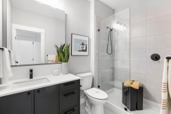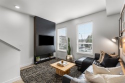 Welcome to RAIL DISTRICT, a master-planned community by Infinity Properties in the heart of Historic Downtown Abbotsford, where urban energy meets relaxed Valley living. This thoughtfully designed 2-bedroom + flex home features an open, efficient layout with generous living space and a versatile flex area ideal for a home office, gym, or studio. Enjoy natural gas forced-air heating, durable wide-plank laminate flooring, and a modern kitchen with custom shaker cabinetry and polished quartz countertops. Air conditioning included for a limited time. Newly completed amenity building with gym, pool, entertainment lounge, workstations & more. Estimated completion March 2026. Visit our Presentation Centre and Showhome Saturday – Wednesday, 12–5 pm.
