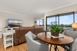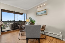 Beautifully UPDATED 9th floor unit w/ OVER 1,000 sqft of peacefull Living. This lovely condo offers abundant natural light & stunning 180 degree MOUNTAIN & City VIEWS, so you can enjoy incredible Sunsets from your patio. Thoughful Renovations include a BRIGHT kitchen w/ newer appliances, full bathroom reno's in both bathrooms, tasteful light fixtures, high quality flooring and crown molding throughout. PRICED TO MOVE in this well managed building which includes Aqua-cise in the indoor pools, games nights, movie nights, workshop for hobbies and more... perfect for an active, connected lifestyle in the heart of Abbotsford or a quiet sunset close to parks.