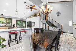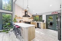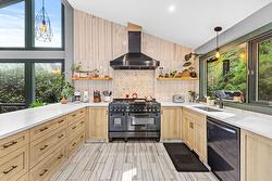 Surrounded by mature trees, the backyard deck offers privacy and a strong connection to the landscape, complete with a custom stone-accented built-in BBQ. The primary suite opens onto its own private deck - a peaceful extension of the bedroom and an ideal place to start or end the day. A large detached shop and greenhouse add even more versatility.