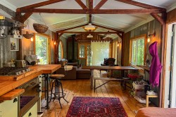 Located at the end of a quiet road, you will instantly feel one w/nature. This unique property offers 3 bedrooms upstairs in main living area & 2 suites downstairs that can connect to main house offering potential for investment suites. The house features beautiful details w/expansive indoor and outdoor areas with stunning south views of Killarney Lake throughout. Walk down some steps to arrive at the forest spa w/two outdoor tubs and Scandinavian style sauna. Keep going down steps to arrive at the 791sqft 1-bedroom cabin w/full kitchen, fireplace, bathroom, outdoor patio & veggie garden ready to harvest for meal time. Head for a swim in the lake via your private trail leading directly to Killarney Loop. This home must be seen to capture the quality of detail throughout.