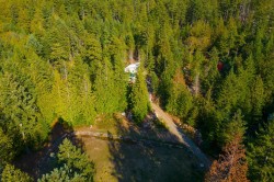 Bordering parks on two sides and forested crownland on a third, this property and home exude privacy. Non-strata, 3.38 acres, and built in 2023. The 1,500 sf home sits just above Aaron's Field, and features a reverse floor plan, sun-soaked deck off the open plan LR/DR/kitchen, and a rough in for an elevator. The fenced-in veggie garden features fire pit, pizza oven, green house and water collection into a large storage tank. There is a cleared, 2nd build site for another potential home up at the top of the property, and plenty of potential for hobby farming and living off the land. Close to trails down to Bowen Bay beach, up Mt Gardner, and more.