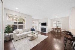 Rarely available corner-unit townhouse featuring 2 bedrooms + den and 2 full bathrooms in the desirable Metrotown area. Enjoy an unbeatable central location steps to Patterson SkyTrain Station, making commuting effortless. Functional layout with bright living spaces, spacious bedrooms, and a versatile den, ideal for a home office or guest area. Minutes to Metropolis at Metrotown, Crystal Mall, Central Park, and Burnaby Public Library. Features stainless-steel appliances, granite countertops, and a stunning 605 sq ft private patio, perfect for outdoor living and entertaining. Includes 1 parking stall and a separate storage locker. School catchments: Moscrop Secondary and Chaffey-Burke Elementary. Ideal for first-time buyers or investors. OPEN HOUSE: February 8, Sunday 1:00-3:00PM