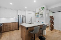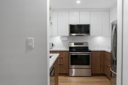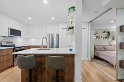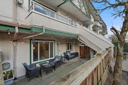 Fully renovated 1 bedroom plus large den (easily a second bedroom) in coveted Vancouver Heights with a Walk Score of 95. This bright, south-facing ground-floor townhome offers a spacious 833 sqft open layout featuring a stunning new kitchen, updated flooring, fresh paint, and modern fixtures throughout. The generous living and dining areas open to an expansive 300 sq ft private patio, perfect for sun-filled indoor-outdoor living, entertaining, or relaxing. Well-maintained building with secure underground parking, storage locker, and in-suite laundry. Steps to shops, cafés, transit, and parks, and minutes to the Heights commercial strip. School catchments include Gilmore Community and Alpha Secondary. A truly turnkey home in one of Burnaby’s most walkable and vibrant neighbourhoods.