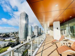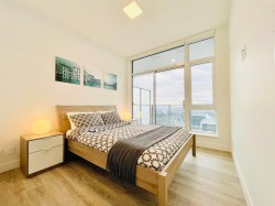 SOUTH FACING (10x QUIETER) Not facing SkyTrain; Located right at the foot of Metrotown Station; Air Conditioned 9ft ceiling 2 bed 2 Bath w/ Excellent layout & 380 sf Balcony. High End finishing, Italian BVA Cabinetry, Stainless Steel MIELE appliance package (Fridge, Gas cooktop, Oven, Microwave & Hoodfan), Quartz countertops & backsplash, Kohler Kitchen sink w/ Accessories, ALL Marble Tile for bathrooms, Wide plank flooring thru-out & AUTO Roller blinds. Amenities: 24hr concierge, 10,000+ sqft on 11th Flr provides outdoor patio, LARGE GYM, yoga studio, Steam & Sauna. 4th Flr Party Rm, Study & Meeting Rm. Steps to Local stores along Beresford St, Crystal Mall, Bonsor Park, Metrotown shopping w/ over 400 stores, dining & entertainment. Remaining 2-5-10 NHW. Please CALL now as this Wont Last.