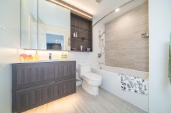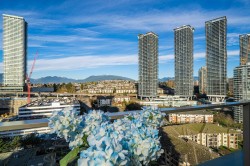 New Year Deal! Welcome to this spacious 1 bedrooms plus a big-size Den & one bath in Lumina Starling at Brentwood area! Beautiful city & mountains views, practical open floor plan, 9’ high ceilings, good size bdrm and den can function as 2nd bdrm w/sliding door & huge outdoor balcony for your entertainment! Good size kitchen w/stainless steel appliances, full size stove, full size fridge, full size washer/dryer, reflecting the essence of stylish & comfortable living standards! Central A/C system, plus 1 parking stall w/EV set up & 1 storage! Secured building, location, location, location, fantastic for self-use or investment purpose! Very quiet inside the unit, but very easy access to Brentwood shopping,sky train, SFU, BCIT, Costco, highway One.Open House Sun Feb 8 from 2-4pm.