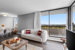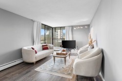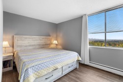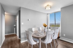 Enjoy panoramic city & mountain views from this beautifully renovated 1-bed, 1-bath home at The Maple at Timberlea. Bright & spacious with new flooring, paint, custom cabinetry & updated appliances. Open layout with large windows brings in abundant natural light. Fantastic amenities include indoor pool, hot tub, sauna, gym & lounge. Strata fee includes heat, hot water & electricity! Steps to Lougheed Town Centre, SkyTrain, shops, restaurants & parks - perfect for first-time buyers, downsizers or investors!