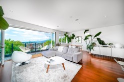 Call listing agent for showing slot. Welcome to this magnificent High quality custom built home with breathtaking CITY & MOUNTAIN VIEW day & night ! This exquisite home features reverse plan, open concept living at its finest on upper floor. Expansive EuroLine Glass Doors open up completely to large balcony for indoor & outdoor living with picturesque views. Main level is comprised of primary suite w/ Dream en-suite and W/I Closet,2 additional bdrms & laundry rm complete this level. Meticulously maintained, bright, expansive interiors, Soaring 9' ceilings on both levels, Radiant Heating, no expense spared in the quality & detailed finishing of this well placed home. This residence also offers a Detached 2-car garage, and under-home storage-over 800 SF with 5' crawl space.
