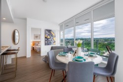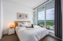 Soak in the Brentwood lifestyle at Waterfall at Lumina. Sitting high on the 19th floor, this approx. 770 sq ft 2 bed 2 bath home is wrapped in floor-to-ceiling windows and 9' ceilings, creating a bright, airy interior. A spectacular 250 sq ft covered balcony becomes your outdoor living room with wide city and mountain views. The kitchen is designed for everyday cooking and entertaining with full-size cabinetry, Bosch appliances, gas cooktop and quartz counters. Stay comfortable year-round with central A/C and modern roller blinds. All of this just steps to Brentwood Town Centre, SkyTrain, shops, dining and services. One parking and one locker are included. openhouse: Dec. 20, Saturday 2:00-4:00 pm