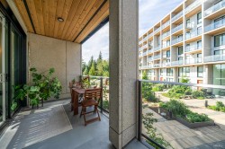 Welcome to Oslo, a well-maintained home on the quiet south slope of SFU Mountain. This functional 1 Bed+Den unit offers 619 sqft of interior living space with 9'over-height ceilings, enhancing natural light and openness. The home features a premium Samsung stainless steel appliance package, a heat recovery ventilation (HRV) system, and radiant in-floor heating for year-round comfort. The efficient layout includes a den for added flexibility, a separate dining area, and a spacious living room. An oversized balcony extends the living space and is ideal for outdoor seating. Includes 1 parking stall and 1 storage locker. Residents enjoy over 14,000 sqft of indoor and outdoor amenities. Located in a strong school catchment with convenient access to SFU, shops, daily services, and scenic trails.