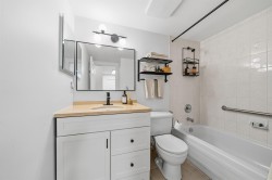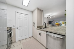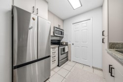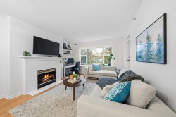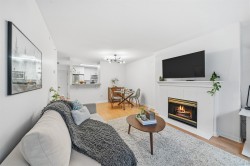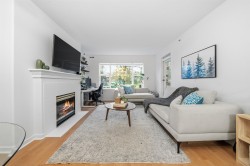 Welcome to The Legends, this bright and thoughtfully laid-out 1-bedroom home offering comfort, style, and outstanding location. The modern kitchen features stone countertops, updated cabinetry, and stainless steel appliances, flowing seamlessly into a spacious living and dining area filled with natural light. A cozy gas fireplace creates the perfect setting for relaxing evenings or entertaining guests, while in-floor radiant heating adds quiet, efficient warmth throughout the home. The generous bedroom provides a peaceful retreat with excellent storage. Perfectly positioned steps from Deer Lake Park yet just minutes to Metrotown, this well-maintained building offers a rare blend of nature, convenience, and lifestyle. Perfect for a first-time buyer or a smart investor. Open House Sat 2-4
