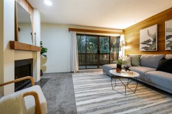 Discover the serenity of a corner, greenbelt unit at The Beresford! This spacious 2 bedroom, 1 bathroom home maximizes light and privacy with windows on two sides, offering beautiful West facing greenbelt views and Southern sun exposure. Enjoy an abundance of natural light in the spacious living area, highlighted by a cozy gas fireplace. Step out to the very large private balcony, your perfect outdoor retreat overlooking the beautiful gardens. The updated kitchen features newer appliances and eating area. There is convenient in-suite storage as well as a locker. This well-maintained building includes a sauna and exercise centre, with strata fees covering heat and hot water. The location is unbeatable: just a short walk to Shopping, and Skytrain NOTE: SHARED LAUNDRY-OPEN HOUSE DEC 14, 2-4PM