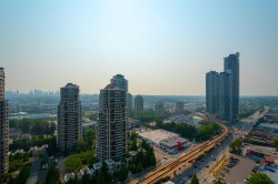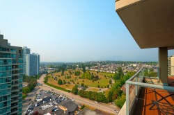 Rare find! Extra large 3br + 2.5bath, corner unit at Buchanan East. Conveniently located in the heart of Brentwood. Bright corner suite boasts 9ft high-ceiling throughout, large living room with gas fireplace, formal dining area and 2 spacious balconies with view of Northshore mountain. Kitchen comes with generous eating area, maple shaker cabinet, granite counter tops, S/S appliances. King-sized master bedroom can accommodate house-size furniture, and 2 good size bedrooms for family or guests. 2.5 bath + laundry room. 2 parking + 1 storage. 1 pet allowed (up to 50lb). Amenity include hot-tub & sauna, exercise room, and lounge. Plenty of visitor parking. Direct access to shopping, short walk to Brentwood mall, Skytrain, and easy access to HWY 1. OPEN HOUSE SEP 13th & 14th, 2-4pm.
