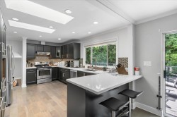 NOT A DRIVE BY!MUST SEE INSIDE! COMPLETELY RENOVATED 4+BDRM, 4 BATH 4 level split home with AIRCON, self contained suite (own laundry) & double garage. It is located in a serene, Oakdale cul-de-sac, minutes to Lougheed Mall (Skytrain) shopping district, SFU, Lyndhurst Elem School & Cameron Park. Features 3 bedrooms above with ensuite & 2nd full bath. Main has a fabulous entry foyer, modern kitchen, quartz counters, SS appliances, breakfast bar & skylights. You'll love to spend time in the oversized sunken family room that opens onto a super sized deck & patio-perfect for pets & entertaining! Quality upgrades include hardwood floors, heated flrs in washrooms, closet organizers, hardi-plank exterior siding & more! Basement finished with a 1 bdrm suite. Fenced yard with cedar privacy hedges.