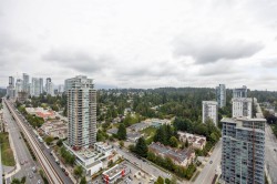 Move-in Ready! Brand new condition! Experience elevated living with a stunning river, mountain and city views from the 26th floor! This southeast corner home with 2-bedroom plus den & 2-bath (Jr. 3 Beds) features floor-to-ceiling windows, a spacious layout, and a gourmet kitchen with premium appliances. The versatile den is ideal for a home office or extra bedroom, and the wrap-around balcony provides expansive outdoor space for entertaining, relaxing, and enjoying the scenery. Located in a vibrant community with direct access to Lougheed Town Centre, dining, and SkyTrain, this is a rare opportunity to enjoy modern luxury living with exceptional amenities and unparalleled comfort in a prime location! Showing 7 days a week!