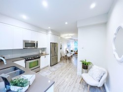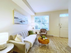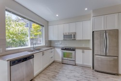 This 3-story CORNER UNIT boasts open layout with 3 bdrm + 3 baths. 9 foot celing,laminate flooring, large windows throughout main floor. Two good-size bedrooms on the second floor are on opposite ends offering max privacy. Spacious master bedroom on the top floor has vaulted high ceiling, 5pcs resort-style ensuite and tranquil courtyard view. Private yard with beautiful dogwood tree is perfect to enjoy morning coffee or summer breeze. Conveniently located near Edmonds Skytrain Station, High Gate Village, Save On foods, public library, Edmonds Community Centre and more. BONUS 2 parking + 1 locker included (Parking #28 & 29, Locker #100). Rental 100% allowed.