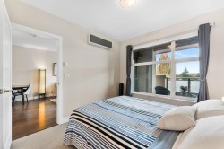 Welcome to Firma, an iconic 26-unit boutique building in Burnaby’s sought-after The Heights neighbourhood. This spacious 1 bed + den corner unit offers over 850 sq.ft. of open living with 9 ft ceilings, creating a real sense of space & easily accommodates house sized furniture. Gourmet kitchen with granite counters & high-end appliances including wine fridge. Wood flooring & AC throughout. Spa inspired marble bathroom vanity & radiant in-floor heating. Enjoy a large terrace with stunning mountain views, partially covered makes it perfect for year-round use. Steps to cafés, shops, parks, and top schools, this is the ideal blend of luxury, comfort, and convenience.