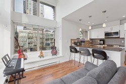 Bright & spacious 3 BED / 2 BATH PENTHOUSE in the heart of Metrotown. Rare corner home with an efficient layout, 12’ vaulted ceilings, floor-to-ceiling windows, recessed lighting, and hardwood flooring throughout. Open-concept kitchen features granite counters, stainless steel appliances, modern cabinetry, and a breakfast bar. Generous primary bedroom with spa-inspired ensuite and deep soaker tub, plus two additional bedrooms and a full guest bath. Enjoy a sun-filled private balcony. Includes 2 parking stalls + 1 storage locker. Well-managed boutique building—5-minute walk to Metropolis at Metrotown, Royal Oak SkyTrain, shops, dining, and transit. Outstanding value in prime Burnaby.