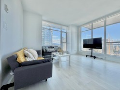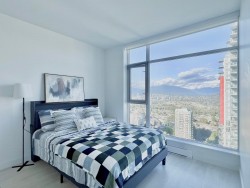 Welcome to Station Square 2, built by Anthem & Beedie. Soar above the city in this spacious 2 bedroom, 2 bathroom corner unit 30th floor, showcasing unobstructed views of the mountains, city, and lake. With 9' ceilings, floor-to-ceiling windows, and an open concept design, the home is filled with natural light. The modern kitchen comes equipped with quartz countertops, stainless steel appliances, a gas cooktop, and plenty of storage. A generous balcony with dual sliding doors extends your living space outdoors. unmatched convenience-just steps from Metrotown Mall, SkyTrain, dining, parks, and schools. Residents enjoy premium amenities including a 24-hour concierge, fitness centre, steam room, sauna, guest suite, and a party lounge with full kitchen and bar. 1 parking stall and 1 storage.