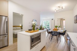 Welcome to CEDAR CREEK - a signature collection by Ledingham McAllister. This elegant, nearly new 2-bdrm, 2-bath condo offers 783 sqft of thoughtfully designed living. Enjoy a modern open-concept layout featuring a stylish kitchen with full-size s/s appliances, quartz counters and 9-ft ceilings. Expansive windows fill the home with natural light, while the generous SE-facing balcony overlooks a tranquil treed setting. 1 parking and 1 storage locker. Pets and rentals welcome. Residents also enjoy premium amenities such as a fitness centre, guest suite, children’s playground, car wash station, and community garden. Ideally situated just minutes from Edmonds SkyTrain Station, Highgate Village, top-rated schools, and beautiful parks.