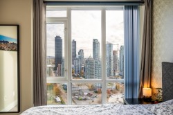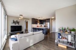 Live above it all at Aviara by Ledingham McAllister. This beautifully maintained 2-bedroom, 2-bathroom home offers an east-facing exposure with stunning morning light and a 33rd-floor outlook. The open-concept layout features a sleek kitchen and well-separated bedrooms for added privacy, while the balcony provides a peaceful space to take in panoramic city views. Ideally situated just steps from The Amazing Brentwood, the new T&T Supermarket, Gilmore Station, Kitchener Elementary School, community centre, parks, dog park, and an array of cafés and restaurants. A refined residence offering lifestyle, convenience, and long-term value. Includes one parking stall and one storage locker.