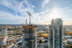 Located in the landmark Brentwood community SOLO District - Altus Tower by Bosa’s Appia, this 34th-floor corner 2 Bed+Den, 2 Bath skyhome showcases panoramic views of the city skyline, Burrard Inlet, and Lions Gate Bridge. The bright open layout features floor-to-ceiling windows, 9-ft ceilings, and a modern kitchen with quartz countertops, premium S/S appliances, gas range & large island. Enjoy year-round comfort with an efficient. Geothermal system providing heating & cooling. Split bedrooms ensure privacy, plus a flexible den. Residents enjoy a top-floor Sky Lounge view deck with 360° panoramic views, fitness centre, rooftop garden, sport court, BBQ area & 24-hr concierge. Steps to SkyTrain, Whole Foods & The Amazing Brentwood.Includes 1parking& 2 locker.OpenHouse Feb 14&15 Sat&Sun 2-4PM