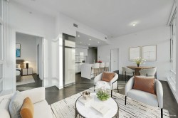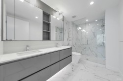 Welcome to Solo District Tower 3. This stunning 2 Bed, 2 Bath CORNER unit home on the 34th floor features AIR-CONDITIONING, an open-concept layout with a sleek island kitchen, and premium Bosch appliances with quartz countertops. With over 10 FOOT CEILINGS, enjoy breathtaking NORTH-FACING mountain views from your expansive, large balcony—perfect for entertaining or relaxing above the city. Floor-to-ceiling windows flood the space with natural light, while the thoughtful floor plan ensures comfort and privacy. 1 parking stall and 1 storage locker included. With its blend of high-end finishes, modern design, and unbeatable outlook, this home offers the ultimate urban lifestyle in the most desirable area of Brentwood! OPEN HOUSE: SATURDAY, FEB 14 + SUNDAY, FEB 15, 100-300