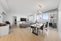 Welcome to Station Square-Tower 4, by Anthem Properties and Beedie Living. Metrotown’s most prestigious area. Steps to Restaurant Row, Metropolis and Crystal Mall Shopping, Central Park, Schools and Skytrain. Estate level, well laid out center 2 bedrooms and den home with gorgeous views of the North Shore Mountains and downtown. Large den which can easily be used as a third bedroom. 10’ ceilings, air conditioning , 36” Bosch integrated fridge, separate laundry room with sink and a large walk in closet in the master bedroom. Enjoy 32,000 sq ft of amenity space including a well equipped gym, a designer lounge, lush landscape rooftop courtyard with two BBQ areas and fireplace. 24 hour concierge.2 parking stalls include 1 EV and 1 regular.