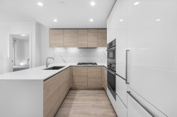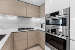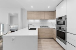 Cirrus at Solo District 3 in Brentwood. Steps to Whole Foods, the new Brentwood Mall, SkyTrain, restaurants, and shops. ELEGANTLY UPGRADED 2024 with oversized kitchen with stainless steel Bosch Professional appliances, quartz countertops, pantry, custom Rove Concept walnut frame drawers & exceptional storage enhanced by custom California Closets cabinetry. Built-ins include dual walk-through master closets with illuminated display cabinet, second bedroom closet, & additional kitchen/entry storage. Air conditioning ensures year-round comfort. Efficient layout with no wasted space, spacious 2 bedrooms & 2 bathrooms. LEED Gold building with top-tier quality. Amenities include fitness center, lounge, outdoor garden with BBQ, and 24/7 concierge. 1 parking & 1 locker included. BUILT BY APPIA...