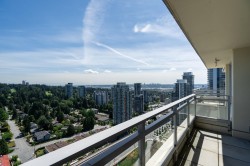 SUBPENTHOUSE LIVING with EXPANSIVE VIEWS of forest, mountains & Mount Baker from this SKYHOME at renowned Ledingham McAllister's Silhouette! BRIGHT & SPACIOUS 2 bed+den home w/ floor-to-ceiling windows, beautiful H/W flooring & a LARGE (100sf+!) balcony. Perfect for entertaining! Open Chef’s kitchen w/ granite counters, S/S appliances & gas cooktop flows to proper dining & living areas w/ beautiful fireplace for cozy evenings at home. Den/office perfect for WFH. Oversized primary w/ large walk-in closet & SPA-LIKE 5-pc ensuite. Second bed w/ easy access to 3-pc guest bath. Proactive strata with 5 star amenities, incl. gym, guest suite & rooftop terrace. Just steps to SkyTrain, the City of Lougheed Mall, restaurants & parks. Parking & Storage. Pets and Rentals ok. This is elevated living!