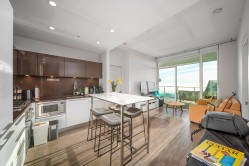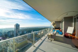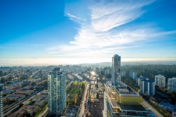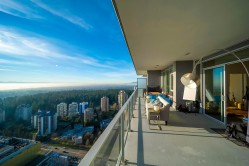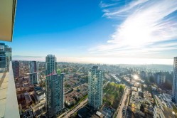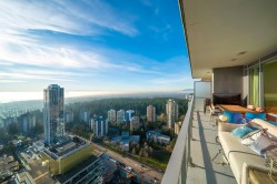 Beautiful high-level 2 bed 2 bath home at Gold House North by Rize Alliance, located in the heart of Metrotown. This southwest-facing suite offers spectacular city, mountain, river, and ocean views from a large wrap-around 350 sf balcony, perfect for year-round enjoyment. Features A/C, 9' ceilings, a functional layout with bedrooms on opposite sides, and a high-end Armony Cucine kitchen with integrated Bosch appliances, gas cooktop, quartz/glass backsplash, and LED lighting. Enjoy over 30,000 sq ft of amenities including a fitness centre, social lounges, study/music rooms, party room, BBQ terrace, and 24-hr concierge. Pets & rentals allowed. Steps to SkyTrain, Metrotown, Station Square, Crystal Mall, Bonsor community, restaurants, and more. Comes with 1 parking & 1 locker.