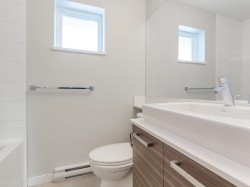 Perfectly tucked away in a 13 year young and well-maintained building,this unit provides privacy. With it's own entrance, the unit offers ease of access in and out of the building.The amazing floor plan is a must see-the home opens into a welcoming foyer before you walk upstairs to the open concept main floor.Here you are greeted by a kitchen area that includes an island as well as stainless steel appliances, followed by a livingroom and paneled washer and dryer.A balcony awaits for entertaining and barbecuing with family and friends.The top floor has 2bedrooms and 2full bathrooms.Located near Westridge Park,the area is great for walks,tennis,or just kicking the ball around.One bus away from SFU, a hop skip and jump to shopping and plenty of street restaurants. First time home buyers