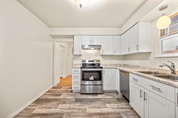 Nestled on a quiet street in the highly sought-after Brentwood Park neighborhood, this delightful and beautifully updated bungalow offers the perfect blend of character and modern comfort. Renovations are including a brand-new kitchen and bathrooms with elegant shaker-style cabinetry, fresh designer paint colors, and new appliances. The home also features a newer (2021 ) roof, vinyl windows, and updated vinyl flooring in the sun-filled solarium. The spacious main floor boasts two bedrooms, a bright living room, and a formal dining area with stunning inlaid oak floors. The fully finished basement, with its own private entrance, offers exceptional flexibility — complete with two additional bedrooms, a full kitchen and bath, a generous sitting area, walking distance to shops, transit.