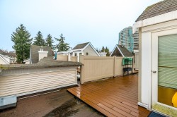 Well-maintained 2-bedroom upper-level townhouse in the sought-after Tudor Grove community, ideally located in Burnaby South’s Highgate neighbourhood. Bright open-concept living and dining area with gas fireplace and spacious kitchen. Enjoy excellent outdoor space with a large patio and a private rooftop deck with views. Recent updates include laminate flooring (2024), new refrigerator (2023), and brand-new dishwasher. Upstairs features two bedrooms with a Jack-and-Jill bathroom including a separate soaker tub and shower. Enjoy excellent outdoor living with a large patio and a private rooftop deck with views. Roof deck and fencing were upgraded by the strata around 2018. Walking distance to Highgate Village, SkyTrain, parks, and schools. Just 10 minutes to Metrotown.