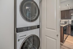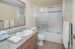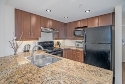 Welcome to Novo 2! This beautiful 2 bed + Den, 1 bath unit in a fully concrete building is ready for you to move in! 804 sqft of living space and an excellent layout! Huge covered balcony with excellent view in fall/winter and privacy throughout the year. Open concept kitchen and living room with granite counters throughout! Large and bright primary bedroom! Good size full bathroom + in suite laundry. Brand new flooring throughout. Well run strata with a healthy contingency! All of this in a great location walking distance to SFU and everything UniverCity has to offer! Hiking trails, grocery, restaurants, coffee shops, shopping, and more!