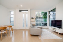 Welcome to "Seasons" by Ledingham McAllister. At 978sf, this amazing 2beds/2 baths corner townhome features soaring ceilings and expansive windows for exceptional natural light. The kitchen showcases stainless steel appliances, quartz countertops and a breakfast bar. Enjoy open concept living with versatile space that offers flexible options for a home office or entertaining. Just steps to Holdom Station, walking distance to shopping and dining at the Amazing Brentwood, with recreation and schools nearby. One EV-ready parking stall and one storage locker included. Main entrance is 5460 Broadway. **OPEN HOUSE SAT & SUN JANUARY 17 & 18 (1-3PM)**