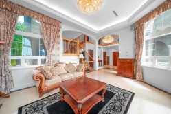 This exceptional European-style luxury home is located in the prestigious Highland SFU area, offering stunning panoramic south-facing views. Thoughtfully designed with exquisite finishes throughout, it features a 9' ceiling on the main floor and a soaring 17' foyer. Marble and hardwood flooring, granite countertops, and 24K gold-plated mosaic glass tile accents in the kitchen and bathrooms add elegance. The home includes an open-concept and wok kitchen, solid oak doors, custom maple cabinetry, and a jacuzzi tub. Crystal chandeliers grace the foyer, living, and dining rooms. Central A/C, security system, crown moulding throughout, and paved driveway and walkway complete this luxurious residence. 4mins drive to SFU and Golf Course—a must-see masterpiece!