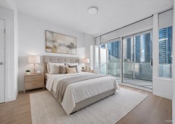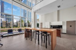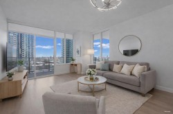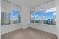 Goldhouse South, THREE Bedrooms, SE CORNER w/AC. Bonus of THREE side by side parking stalls! A comfortable living at 1,088 sf. Brand new paint & flooring, move-in condition. Kitchen equipped w/gas cooking, full size appliances. Balcony wraps around entire home. Amenities include 24-hour concierge, gym, lounge & more. Nearest to Crystal Mall, library, Station Square, transit & all the conveniences of Metrotown. A must see. OPEN SAT FEB 7, 2.00-4 pm.