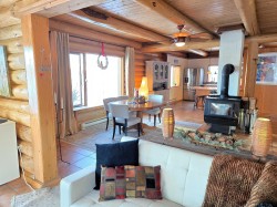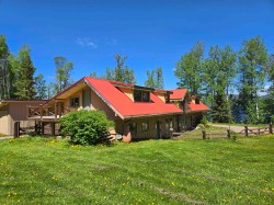 116 acres of luxury lakefront living with all the comforts and tons of extras! The beautifully built log home features multiple decks, balcony, and large windows which offer spectacular views from almost every room. Retreat to the inviting and calming Lake Room, set in such a way you feel like you're right on the water. The 90' x 30' workshop has plenty of space for all your projects and the second floor, with decks on each end, offers a blank canvas for future ideas. A separate 70' x 30' building has tons of room for all your toys and treasures. Charming guest cabin perfect for guests, AirBnB, or long-term mortgage helper. This beautiful property also features a beach area, dock, firepit, orchard, greenhouse, mature trees, fencing and a super cool geodome greenhouse. View today!
