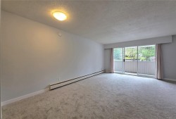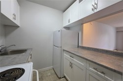Here is a beautifully updated 55+ studio suite, ideal for the single senior looking for safe, peaceful, and affordable living. The kitchen has new cabinets, countertops, range hook and sink, and it opens to the eating area and spacious living room. You have a large storage space, and many updates including new flooring throughout, new toilet & vanity in the 4-piece bathroom, fresh paint, and new door & baseboard trims. With low strata fees, included heat & hot water, you will not find a more affordable home in this beautiful condition. The unit is located in the back of the building making it very peaceful, and conveniently situated across the hall from shared laundry. The Monterey building has a brand new roof (already paid) and is classified as a crime free building. Safe, peaceful, bright and affordable.