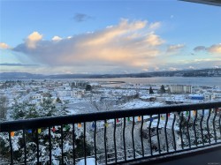 Welcome to this 2-bedroom, 1-bath condo with some of the best views in Campbell River. Enjoy panoramic ocean, city, and mountain views from the living room, bedrooms, and large balcony—watch cruise ships pass and whales play from your window. The unit is tastefully updated and bright throughout. The building has major upgrades underway, including new siding, with full exterior completion expected summer 2026; this unit already features the new finish for added peace of mind. Located just minutes from schools, shopping, and downtown, this home offers convenience and lifestyle. Amenities include storage, a recreation room with sauna, and a pet-friendly, no-age-restriction policy. Sellers are moving on to a larger home as they prepare for their next chapter.