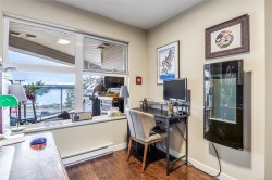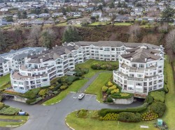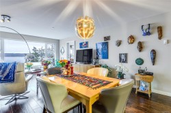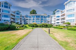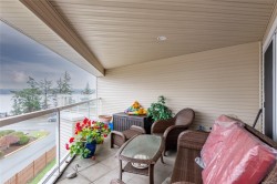 Enjoy beautiful ocean & mountain views highlighting Discovery Passage & the Coastal Mountain Range from this executive Silversea condo. This tastefully updated 2 bed, 2 bath + den unit features high-end finishing throughout. Warm and inviting living space with an abundance of natural light, cozy gas fireplace, and hardwood floors throughout. Other features include granite counter tops, stainless steel appliances, thoughtfully designed cabinetry, pantry with additional storage, large private deck, primary bedroom with full ensuite attached. Building features beautifully manicured grounds, underground parking, as well as a storage locker. Located across from the beach and renowned Campbell River Seawalk.