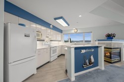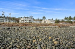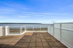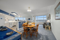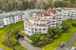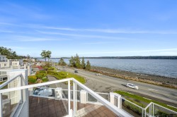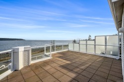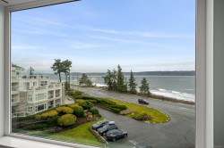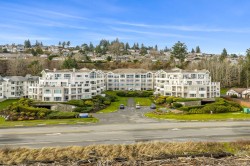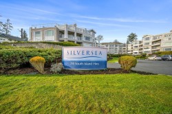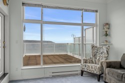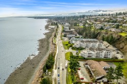 Welcome to Unit 404 at Silversea, a top-floor waterfront condo offering stunning ocean views and low-maintenance Island living. Take in the views across Discovery Passage toward Quadra Island and the Coast Mountains, with nature framed inside every window. This bright and thoughtfully designed home features three rooms: a primary bedroom, second bedroom, and a separate den/office, along with two full bathrooms. Vaulted ceilings in the primary bedroom create a bright, open feel, while the kitchen flows into the living area and view, complete with a gas fireplace. The defining feature of this home is the 715sqft wrap-around balcony, offering outdoor living space with room for entertaining and container gardening, plus an outdoor water faucet. Features include two underground parking stalls, a storage locker, no age restrictions, and a pet-friendly building. Amenities include a fitness room, guest suite, bike storage, three elevators, and convenient access via a dedicated turning lane.