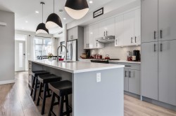 Discover this STUNNING END UNIT townhome with a 1-BED SUITE in the highly desirable Base 10 complex! Ideally situated near schools, shopping, transit & MORE! Step into the BRIGHT, OPEN main floor featuring a sleek kitchen with S/S appliances, elegant lighting & a HUGE island with generous storage. The inviting living room showcases a stone gas fireplace & opens to a LARGE balcony with gas hookup. Upstairs offers a LUXURIOUS primary suite with dual vanities & a glass walk-in shower, plus 2 additional bedrooms, full bath & laundry. Not to mention, DBL garage with added spot to park in front PLUS designated 4th stall in front of unit for suite! A must-see home!
