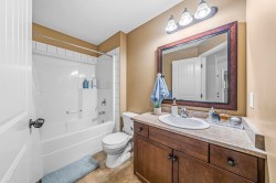 Definitely the best location in Cedar Springs complex! This end unit features the perfect location with a private backyard plus incredible mountain views. The large layout overall, plus a side by side garage and a recreation room in the basement makes this townhome feels like a detached. Completely updated kitchen, including quartz countertops and stainless steel appliances, a large built-in pantry in the dinning, plus a cozy gas fireplace in the living makes this home complete for your family needs. Wood flooring all throughout the main floor, incredibly large windows overlooking the backyard where you can find a hot tub for the ultimate entertainment. 3 large bedrooms in the upper floor, including a full ensuite and walk-in closet in the master. This home has everything plus A/C!