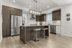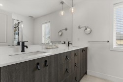 Welcome to Iron Horse, an innovative master-planned community by Diverse Properties, creators of Garrison Crossing and River’s Edge. This vibrant neighbourhood offers greenlane pathways, colourful homes, winding trails, and Iron Horse Park as a year-round gathering place, all with amenities close by. This modern farmhouse-style rowhome features an open-concept layout, gas fireplace, KitchenAid appliances, large island, stylish hardware, and a functional mudroom. Set on a premium corner lot, the home includes two mortgage helpers: a 2-bedroom basement suite and a detached coach house studio above the garage. Parking includes a double garage plus additional suite parking.