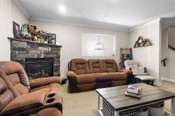 Step inside this bright and inviting home where natural light pours through every window. The main floor features a welcoming living room with a charming stone fireplace, a kitchen with a convenient sit-up bar and a spacious pantry, plus direct access to your private backyard right from the kitchen and dining area—perfect for summer BBQs or morning coffee. Upstairs, the primary bedroom offers comfort and convenience with a walk-in closet and 3-piece ensuite, while two additional bedrooms and a full 4-piece bathroom provide plenty of space for family or guests. Downstairs, enjoy a versatile rec room—ideal for a home gym, playroom, or media space—complete with an additional 2-piece bathroom and laundry. Extra parking right out front makes hosting friends and family a breeze.