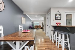 Step inside this bright and inviting home where natural light pours through every window. The main floor features a welcoming living room with a charming stone fireplace, a kitchen with a convenient sit-up bar and a spacious pantry, plus direct access to your private backyard right from the kitchen and dining area—perfect for summer BBQs or morning coffee. Upstairs, the primary bedroom offers comfort and convenience with a walk-in closet and 3-piece ensuite, while two additional bedrooms and a full 4-piece bathroom provide plenty of space for family or guests. Downstairs, enjoy a versatile rec room—ideal for a home gym, playroom, or media space—complete with an additional 2-piece bathroom and laundry. Extra parking right out front makes hosting friends and family a breeze.
