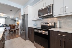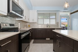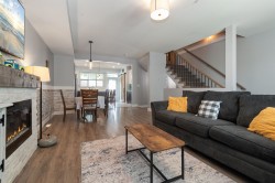 Welcome to Rose Garden Park! This 1,900 sqft home offers 3/4 spacious bedrooms, 2.5 baths and A/C, all set in a well-designed layout. The bright and open main floor features a stylish kitchen w/ white cabinetry, quartz countertops, stainless steel appliances & a large island—perfect for everyday living. The adjoining living room includes a cozy fireplace creating a warm and inviting space. Upstairs, you’ll find a generous primary suite complete with w/i closet and ensuite, plus 2 additional bedrooms and a full bath. Lower level offers a spacious rec room or 4th bedroom w/ half bath & access to your fully fenced backyard. Nestled in a quiet 11-unit, pet-friendly complex with a driveway for 2 — just minutes from the Leisure Centre, hospital, schools, shopping, bike pump track and parks.